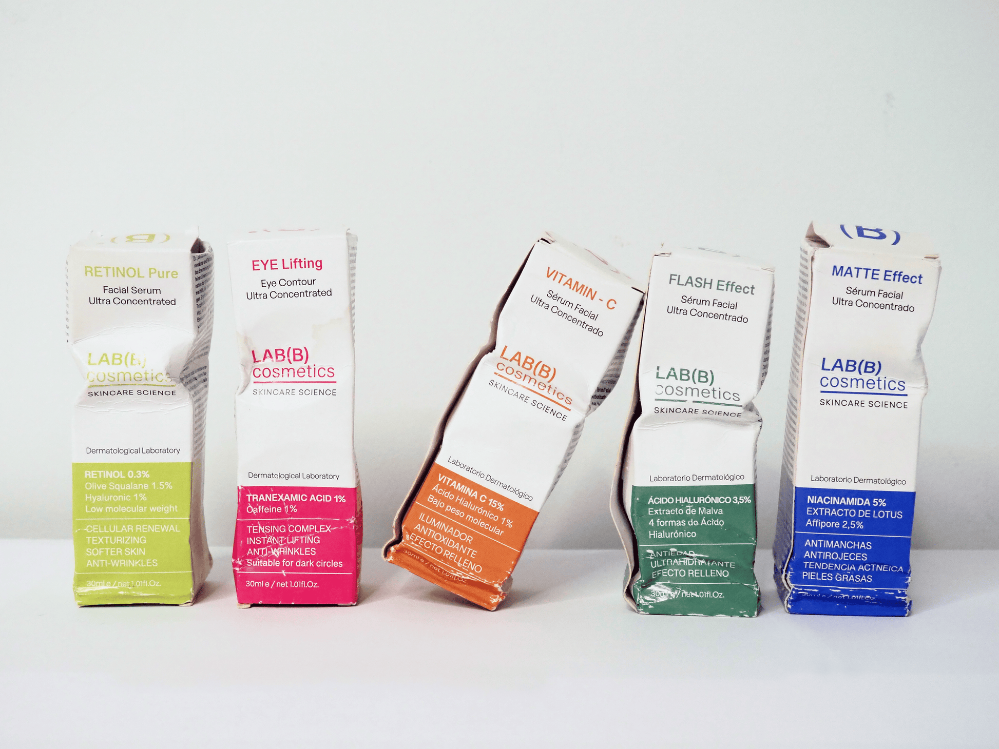 El LAB(B) Full Set es el pack más completo de nuestra marca: contiene los cinco sérums esenciales para crear una rutina de cuidado facial simple, efectiva y de alto rendimiento. Formulados en nuestro laboratorio con ingredientes activos naturales en alta concentración, cada producto está diseñado para tratar múltiples preocupaciones de la piel con el menor número de pasos.